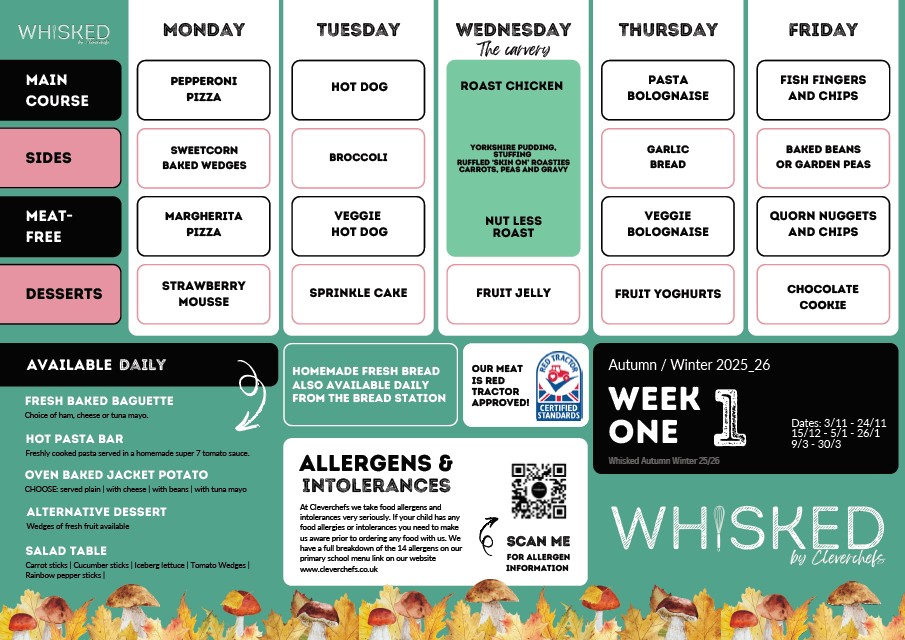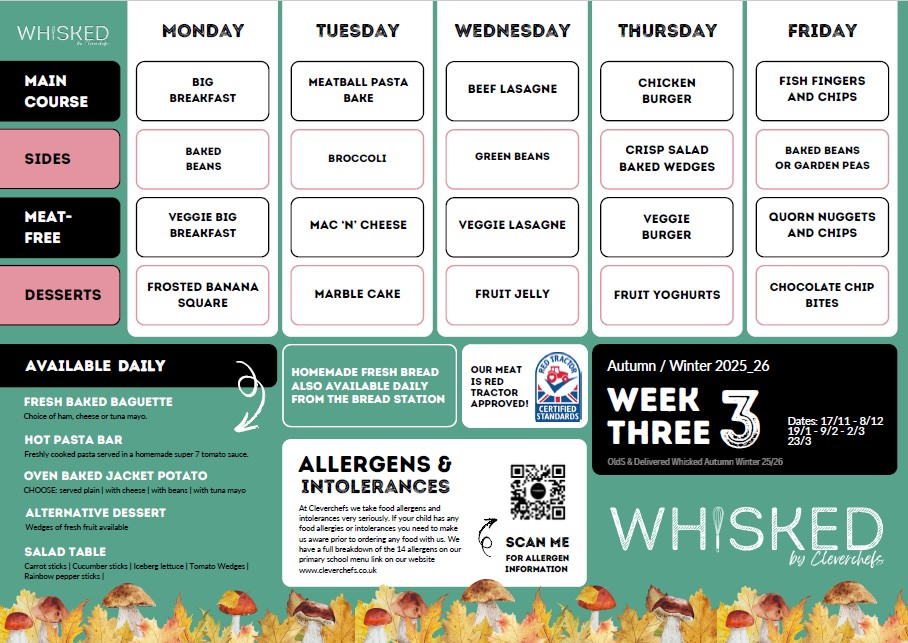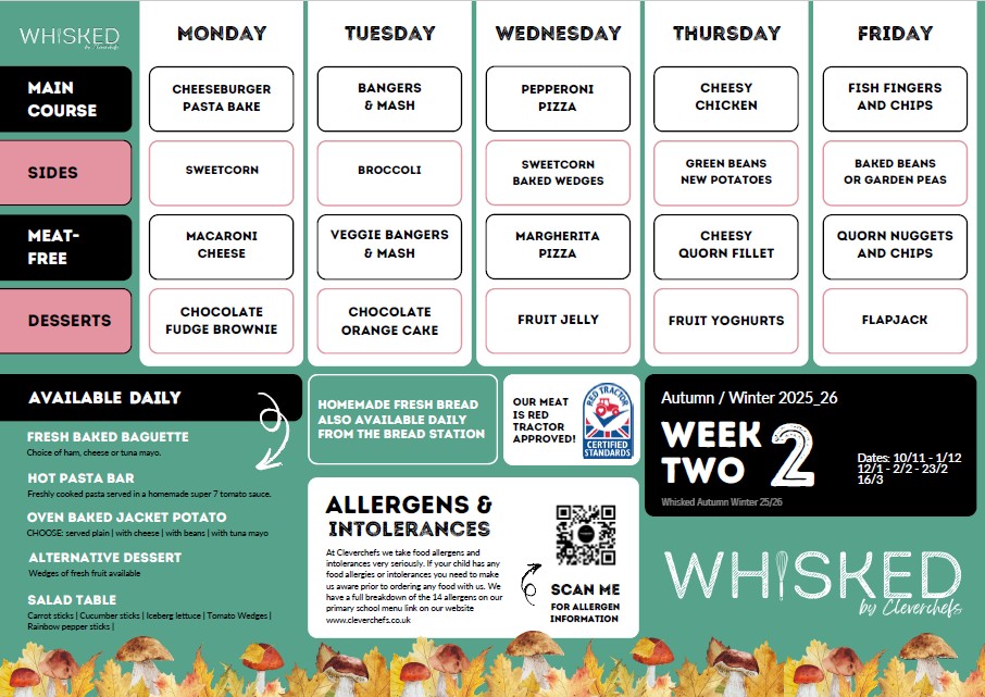 Our school lunches are provided by Cleverchefs. Please click to read more information about them.